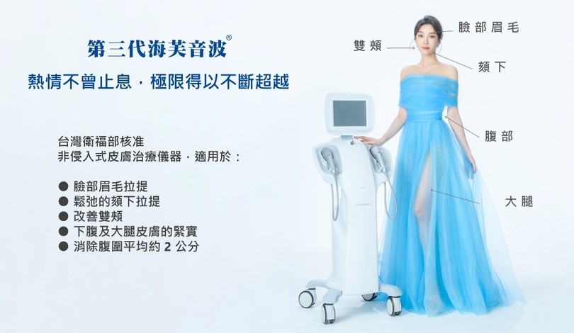 利用高強度聚焦超音波作用於特定深度皮下組織,這種聚焦超音波能量可以透過吸收聚焦能量時的摩擦而將組織加熱,以達到臉部及身體建議治療部位拉提或緊實之儀器。第三代海芙音波為非侵入式皮膚治療儀器,適用於:臉部眉毛拉提、鬆弛的頦下拉提、改善雙頰、下腹及大腿皮膚的緊實、治療腹部脂肪厚度超過2.5公分且BMI小於30kg/平凡公尺者。